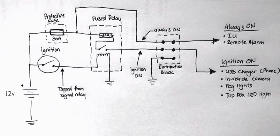 Tapping the voltage needed for the voltmeter was sufficiently straightforward for me as I had previously wired up an “Ignition ON” distribution system. If you’re interested in that, you can read about that here.